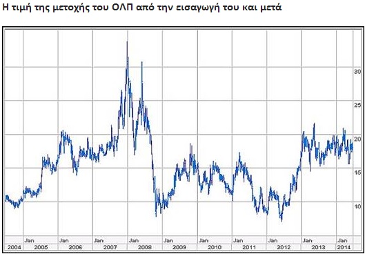 Η αξία του ΟΛΠ σήμερα στο χρηματιστήριο κινείται στα επίπεδα των 450 εκατομμυρίων ευρώ δηλαδή στα 18 ευρώ ανά μετοχή ενώ τα υψηλά έτους στα 19,90 ευρώ ανά μετοχή είχαν διαμορφώσει την κεφαλαιοποίηση στα 497,5 εκατ. Με βάση αυτή την αποτίμηση του 67% του μετοχικού κεφαλαίου που πουλά το ΤΑΙΠΕΔ από το συνολικά 74,14% που ελέγχει (άλλο 6,99% ελέγχεται από το βρετανικό hedge fund, Lansdowne Partners) κινείται στα επίπεδα των 300-333 εκατομμυρίων ευρώ. Με βάση την αποτίμηση της Alpha Finance το 67% αυτό αποτιμάται στα 459 εκατομμύρια ευρώ. Και με βάση το ιστορικό υψηλό της μετοχής της ΟΛΠ ΑΕ, στα 552 εκατ. ευρώ.