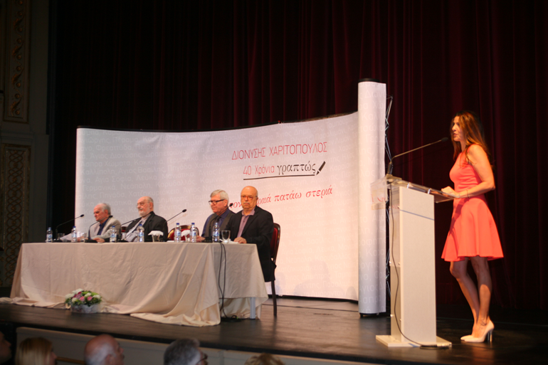 Στην εκδήλωση, μίλησαν για το έργο και τη ζωή του Διονύση Χαριτόπουλου οι: Κώστας Γεωργουσόπουλος, Γιάννης Ευσταθιάδης, Γιάννης Ξανθούλης και Λευτέρης Παπαδόπουλος, ενώ ο ηθοποιός Γιώργος Κιμούλης, διάβασε αποσπάσματα για τον ζεϊμπέκικο χορό.