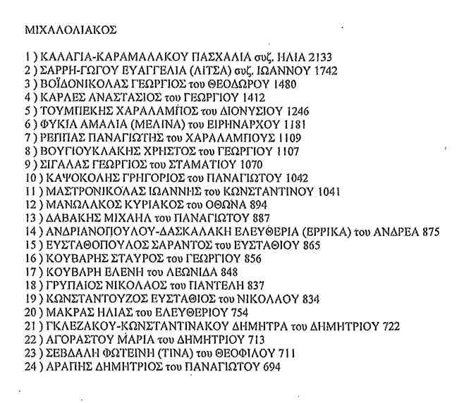 Αυτή είναι η ανεπίσημη λίστα με τους σταυρούς που πήραν οι υποψήφιοι δημοτικοί σύμβουλοι στο συνδυασμό του Γ. Μώραλη