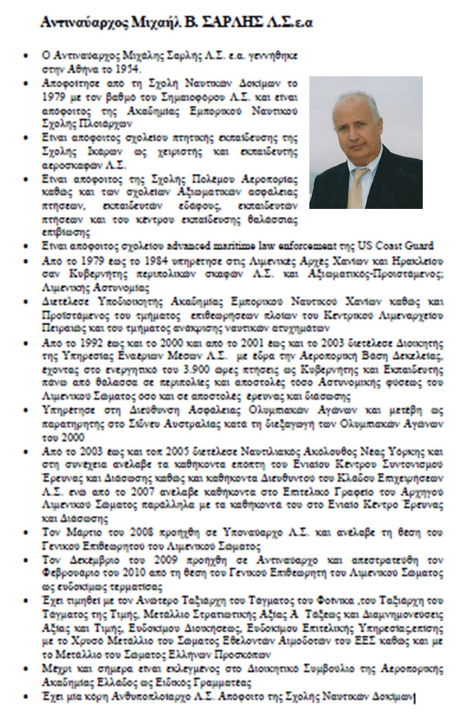 Μάχιμος αξιωματικός, ιπτάμενος χειριστής του ΛΣ για δεκαετίες, υπηρέτησε το Σώμα, τον Πειραιά και την Ελλάδα με πίστη και πάθος.