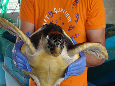 Θέλοντας να ευαισθητοποιήσει μικρούς και μεγάλους σε θέματα που αφορούν το θαλάσσιο περιβάλλον, απελευθερώνει δυο χελώνες Caretta caretta που μέχρι σήμερα περιέθαλπε στις εγκαταστάσεις του.