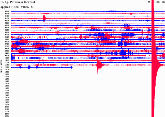 Δείτε πώς κατέγραψε τη δόνηση ο σεισμογράφος του Γεωδυναμικού Ινστιτούτου του Εθνικού Αστεροσκοπείου Αθηνών που είναι εγκατεστημένος στην Αγία Παρασκευή, Λέσβου.