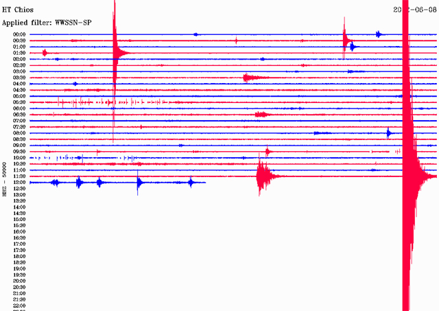 Δείτε πώς κατέγραψε τη δόνηση ο σεισμογράφος του Γεωδυναμικού Ινστιτούτου του Εθνικού Αστεροσκοπείου Αθηνών που είναι εγκατεστημένος στη Χίο.
