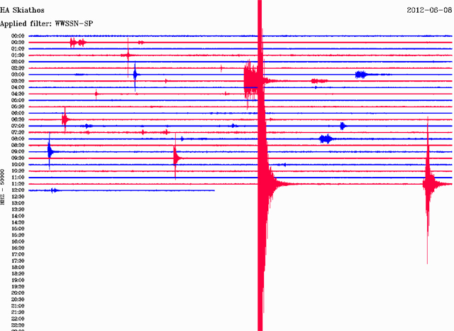 Δείτε πώς κατέγραψε τη δόνηση ο σεισμογράφος του Γεωδυναμικού Ινστιτούτου του Εθνικού Αστεροσκοπείου Αθηνών που είναι εγκατεστημένος στη Σκιάθο.