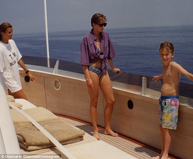 Η όμορφη γυναίκα πόζαρε όλο στιλ στην ιδιωτική θαλαμηγό του σχεδιαστή, έχοντας δίπλα της τον πρίγκιπα William, που ήταν ακόμη παιδί, αλλά και τη Rosario Saxe-Coburg.