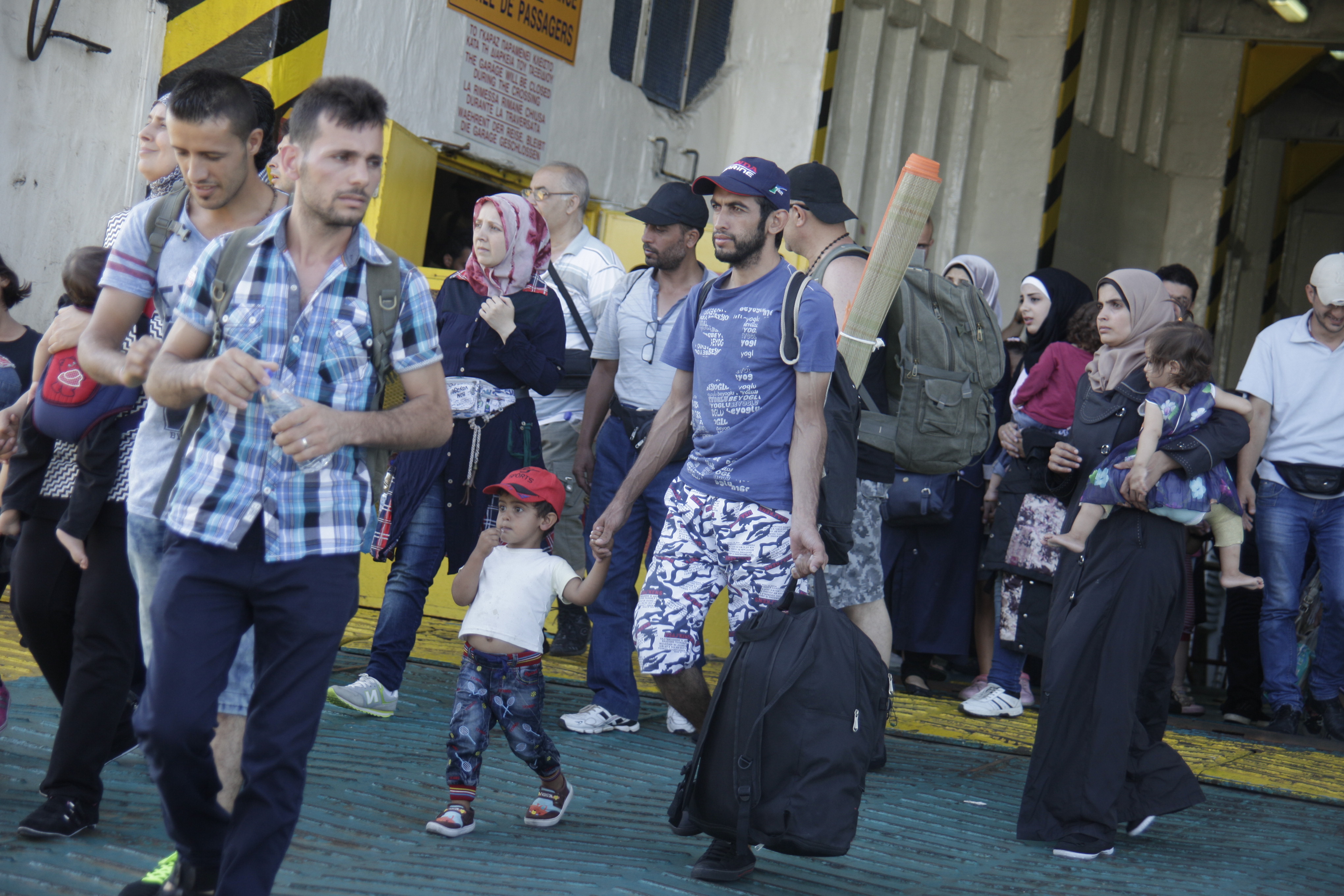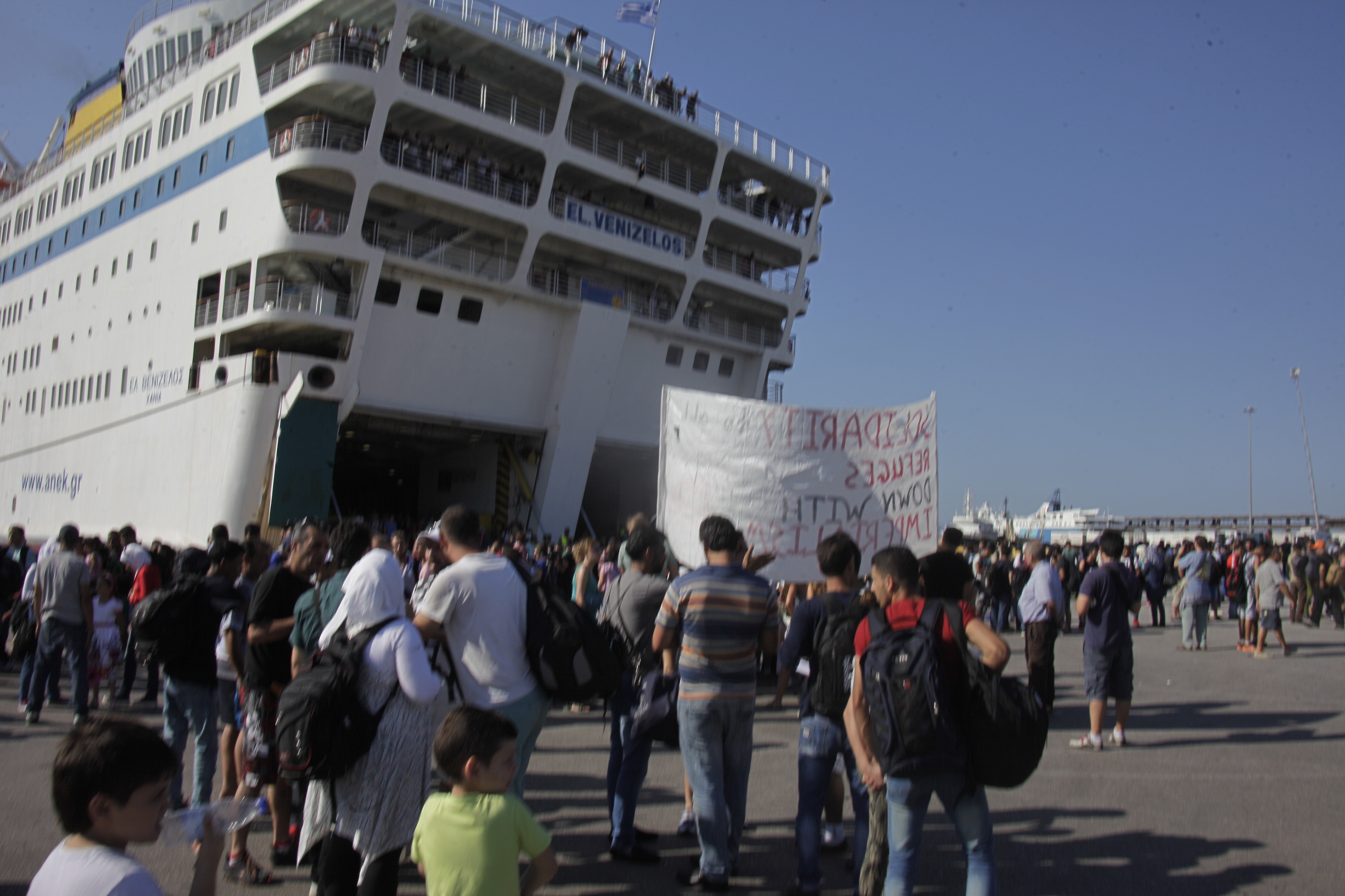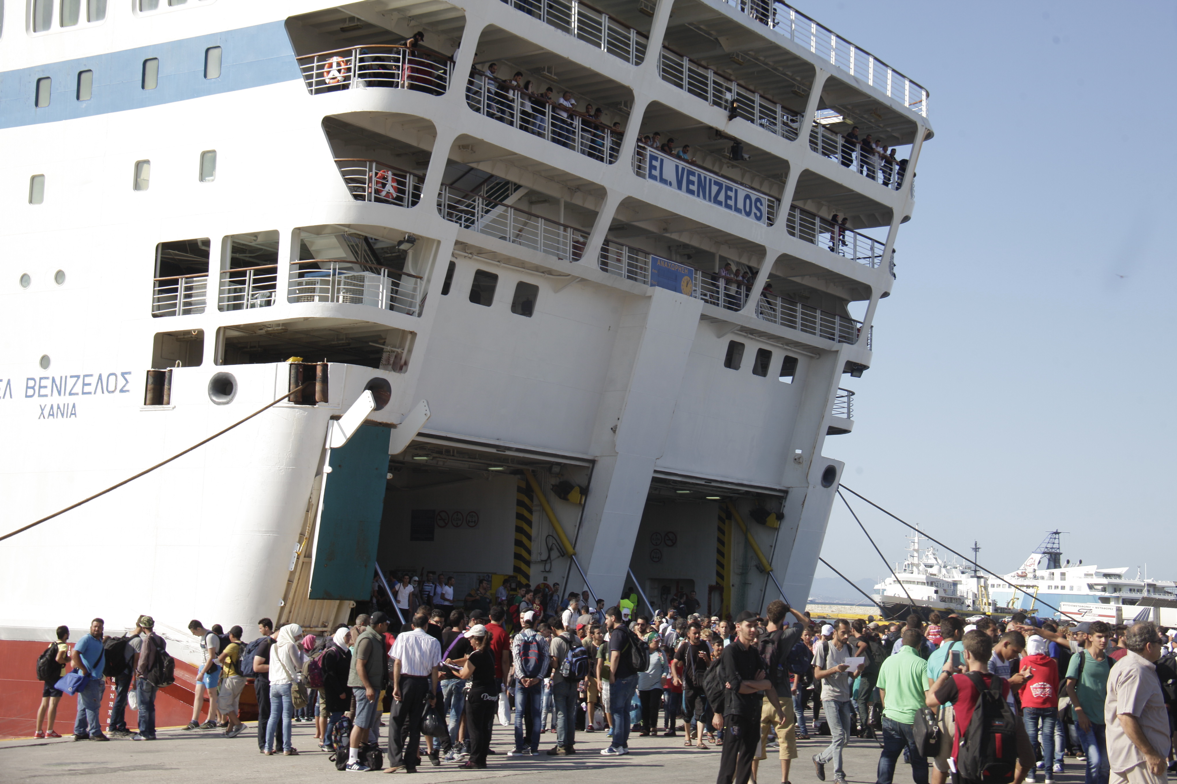 Στο λιμάνι του Πειραιά στην πύλη Ε-1 έφτασε λίγο μετά τις 9 το πρωί το επιβατηγό οχηματαγωγό πλοίο «Ελευθέριος Βενιζέλος» μεταφέροντας 2.440 πρόσφυγες από τη Συρία.