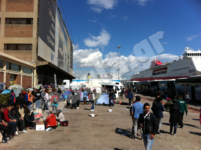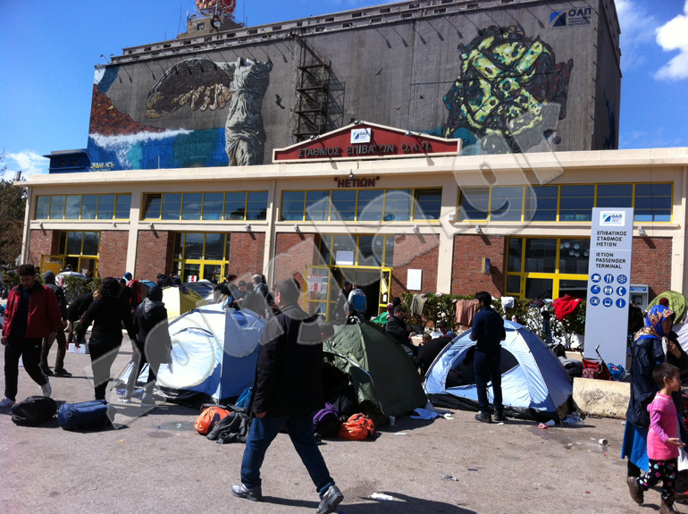 Στην αποθήκη του ΟΛΠ στοιβάζονται περί τους 3.300 ανθρώπους, μετανάστες και πρόσφυγες που έχουν «εγκλωβιστεί» λόγω των κλειστών συνόρων.