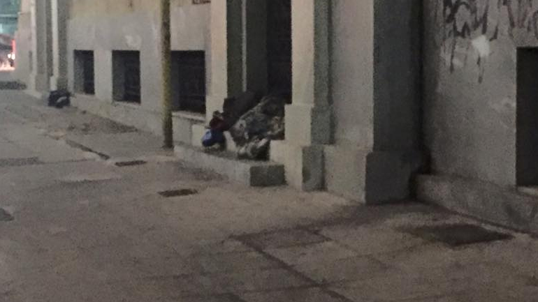 Οδός Μακράς Στοάς…Μένουν άνθρωποι στις εισόδους κτιρίων. Μια κυρία καμμένη στο πρόσωπο, ένας άλλος κύριος κουρνιάζει σε μια απο τις κλειστές εισόδους του μεγάρου ΝΑΤ στο σημείο που στεγαζόταν η Τράπεζα της Ελλάδος.