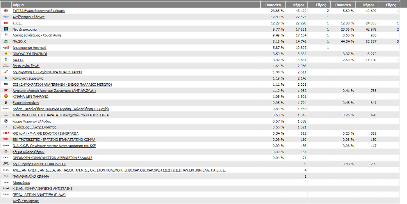 Αναλυτικά τα αποτελέσματα των εκλογών στην Ά και ΄Β Πειραιά όπως έχουν διαμορφωθεί μέχρι στιγμής και σύμφωνα με τα στοιχεία που δίνει το Υπουργείο Εσωτερικών.