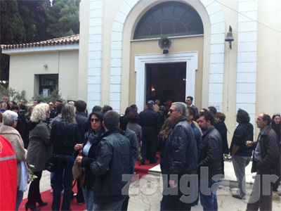 Πλήθος κόσμου, η οικογένεια, απλοί θαυμαστές και φίλοι αποχαιρετούν αυτήν την ώρα τον τραγουδιστή στο Α’ Νεκροταφείο.