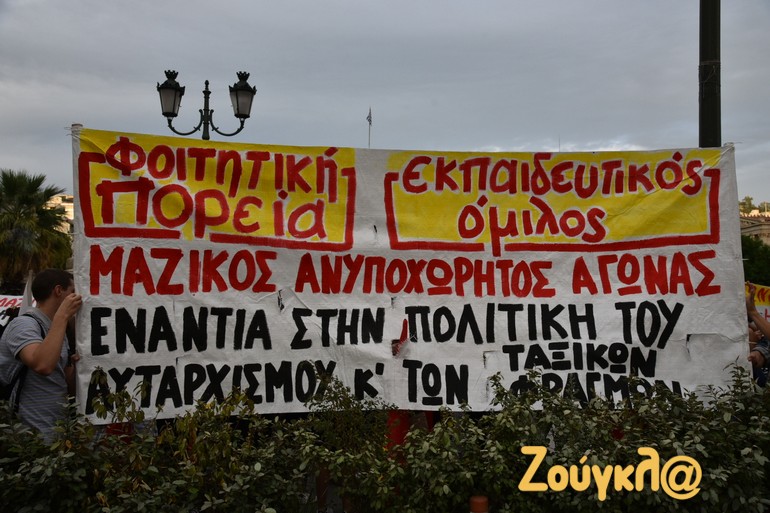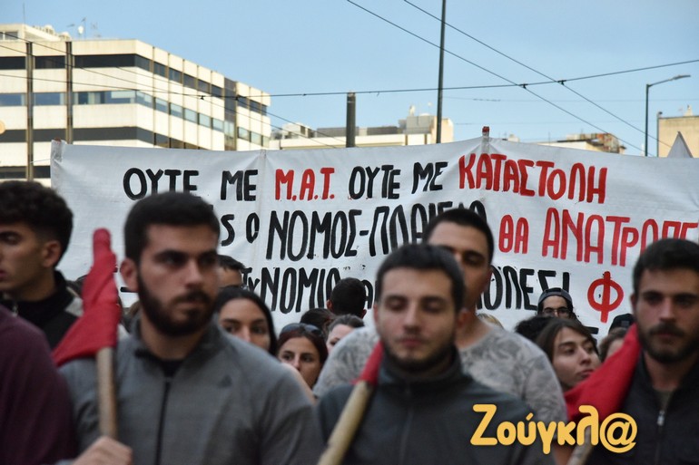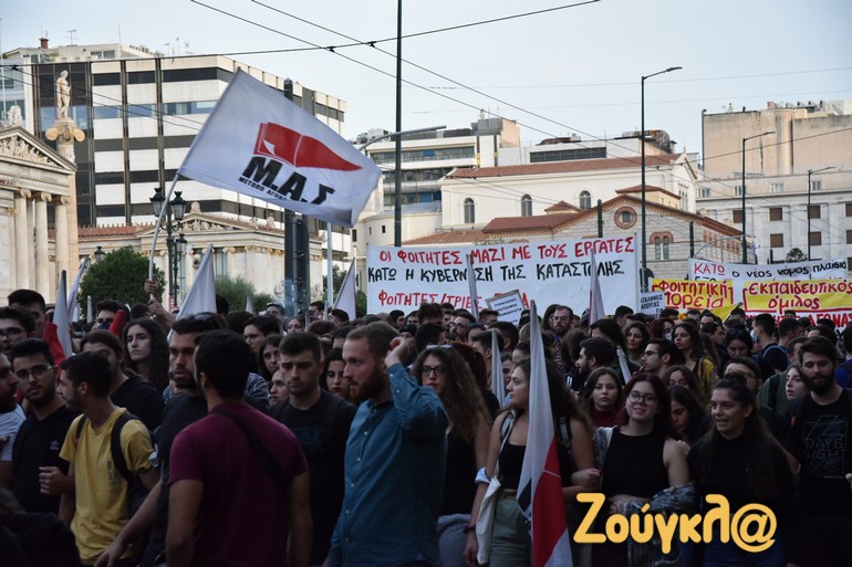 Σε εξέλιξη βρίσκεται φοιτητικό συλλαλητήριο στα Προπύλαια κατά της πανεπιστημιακής αστυνομίας (ΟΠΠΙ) το οποίο διοργανώνουν οι φοιτητικοί σύλλογοι της Αθήνας.