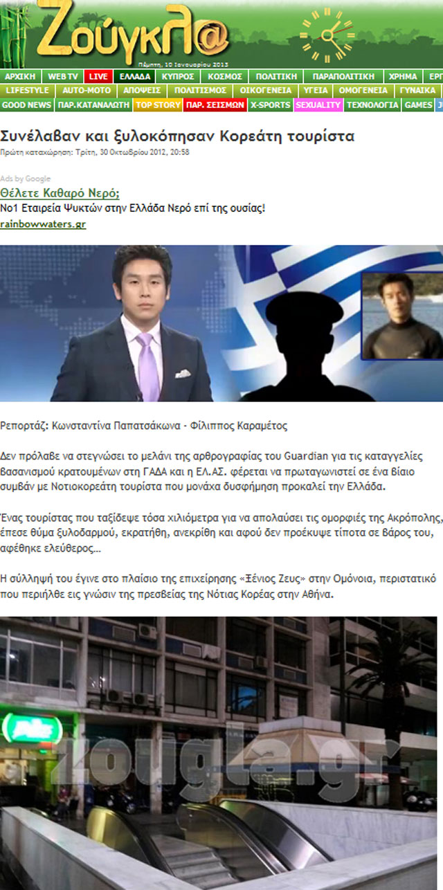 Η περιγραφή του γεγονότος από το BBC αφορά το ρεπορτάζ της Ζούγκλας που στις 30 Οκτωβρίου είχε φέρει στο φως της δημοσιότητας την καταγγελία του Κορεάτη τουρίστα.