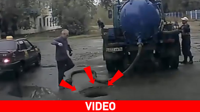 Ο πρωταγωνιστής στο video που ακολουθεί πατά και δεν πατά… Αφού το πόδι του βρίσκει στην αντλία του βυτιοφόρου...