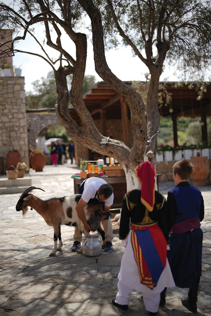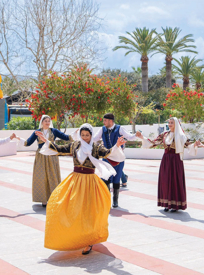 Αλλά το Πάσχα εδώ σημαίνει και γιορτή! Το γλέντι ξεκινά με κεράσματα και παραδοσιακές λιχουδιές, συνεχίζεται με Κρητική μουσική και χορό, και κορυφώνεται με το μεγάλο πασχαλινό τραπέζι γεμάτο αυθεντικές γεύσεις και αρώματα του νησιού.